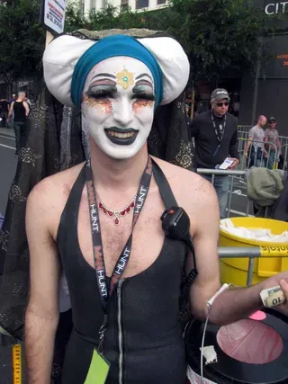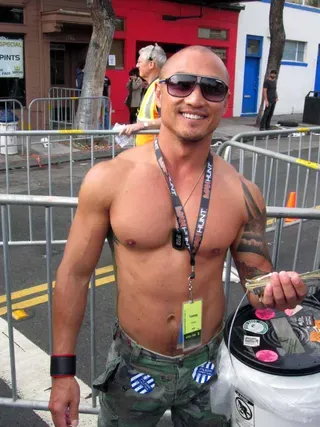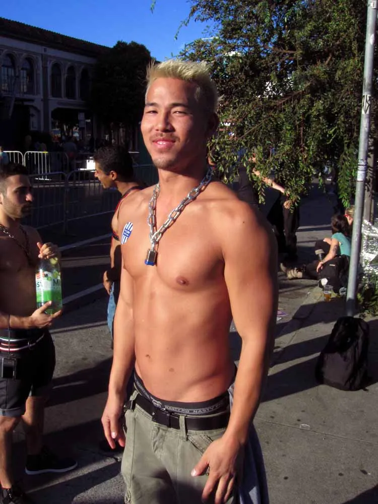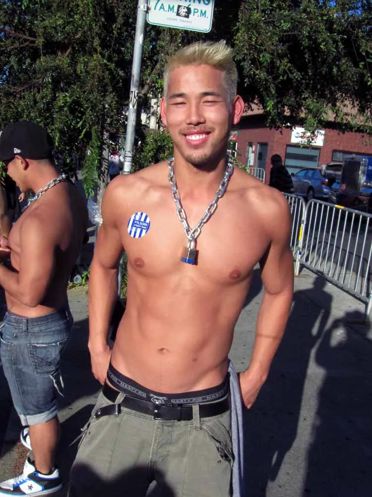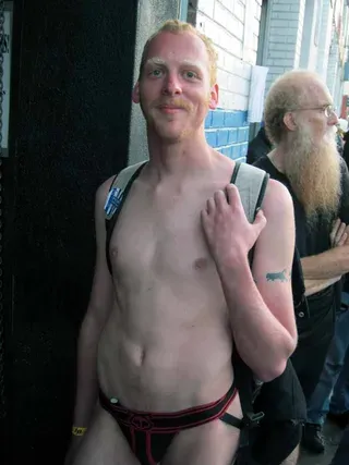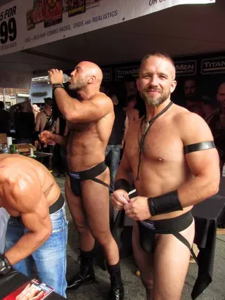 Rain threatened to dampen the festivities, but by mid-afternoon the sun was out and so were half a million exhibitionists and voyeurs. Two live entertainment stages at either end bookmarked five big city blocks of beer, food, leather, and bondage gear vendors. A line-up of six DJ's kept the 10th street Gold's Gym entertainment block dancing from 11am to 6pm. The Steamworks Baths' naked twister game was popular, as were the Titan, Raging Stallion, and Man's Hands booths, where the stars were on hand to sign autographs and take pictures with fans. Spanking and whipping booths were busy and the ladies had a special place to hang at the Venus Playground. By the end of the day, the crowds thinned a bit and became even more frisky, before heading to local watering holes, one of the big after parties, or perhaps a private dungeon.